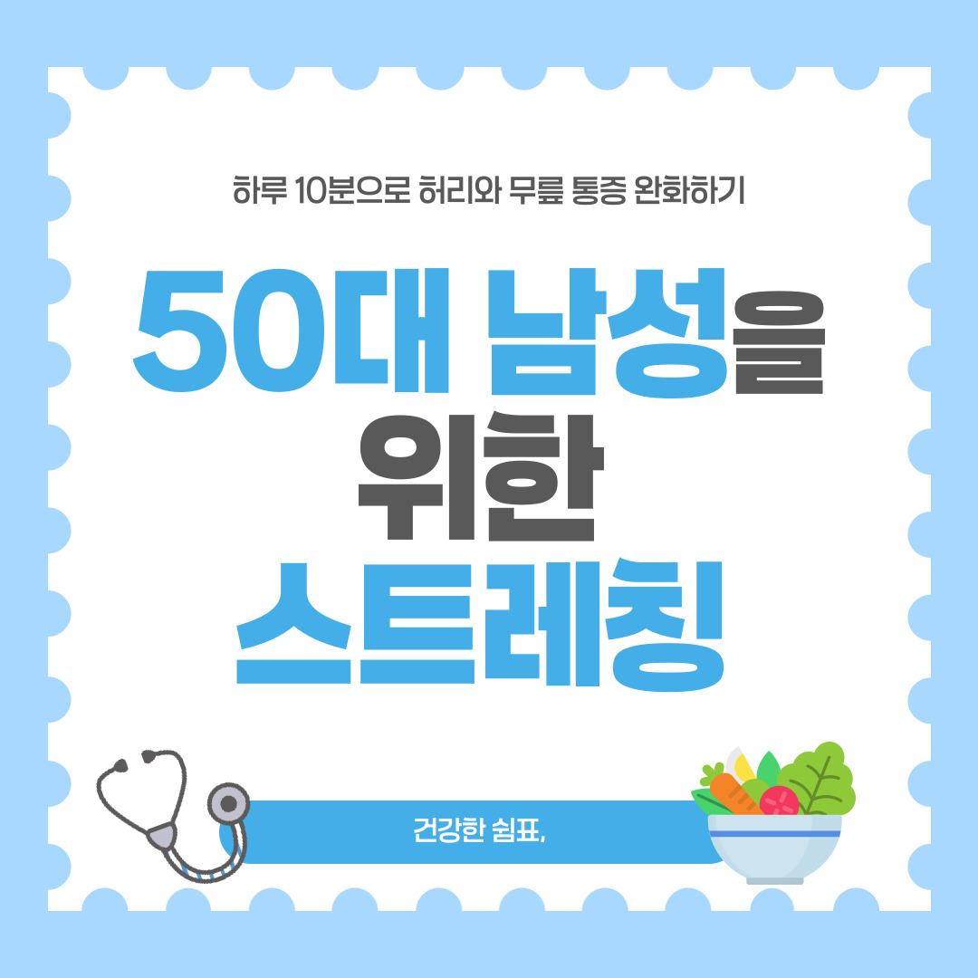 50대가 되면 몸이 예전 같지 않다는 걸 스스로 느끼게 됩니다. 특히 남성의 경우, 업무 스트레스나 활동량 저하로 인해 어깨, 허리, 무릎 통증을 호소하는 일이 많아지죠. 그런데도 운동을 시작하자니 귀찮고, 시간이 없다는 핑계가 생기곤 합니다. 이럴 때는 하루 딱 10분, 누구나 집에서 할 수 있는 ‘스트레칭 루틴’이 큰 도움이 됩니다. 특별한 도구 없이 맨몸으로 가능한 이 루틴은 50대 남성의 근육 경직을 풀고, 혈액순환을 도와 활력 있는 하루를 만드는 데 효과적입니다.